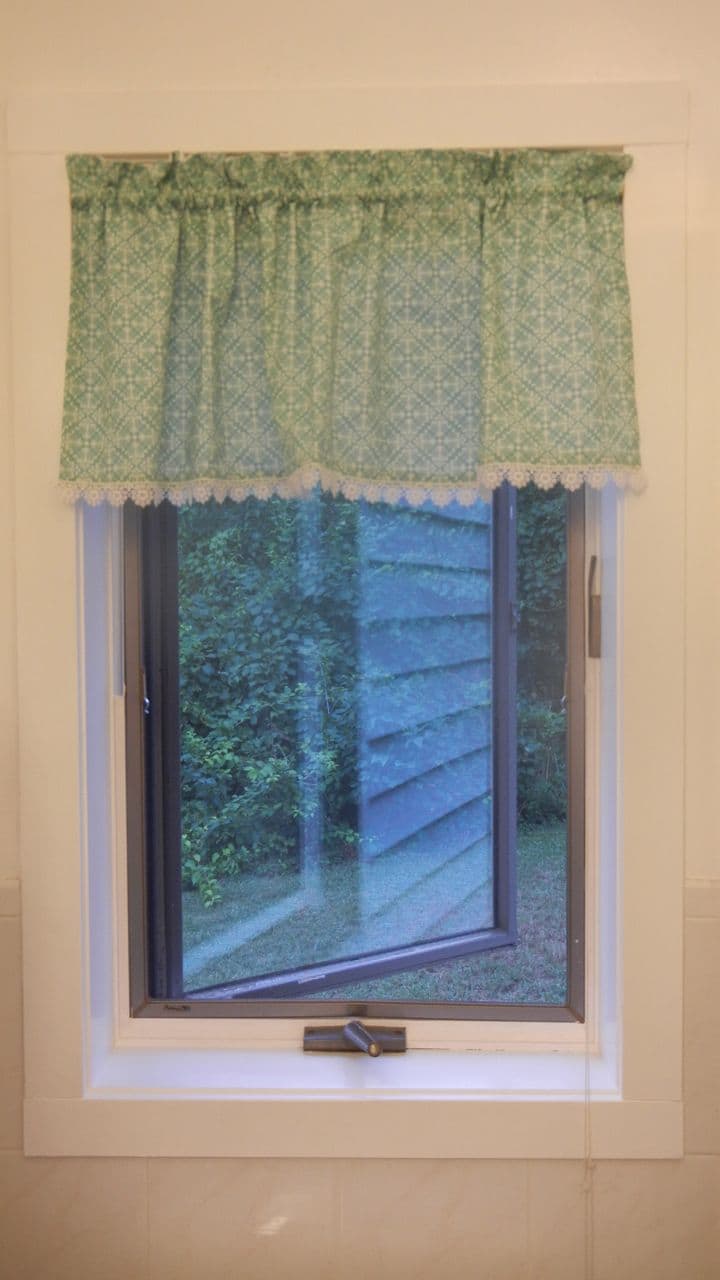 It’s high time we made it look a little better, but we aren’t yet ready for a total bathroom overhaul (maybe in the next year). The small change was window-related. Here is the window in the bathroom.